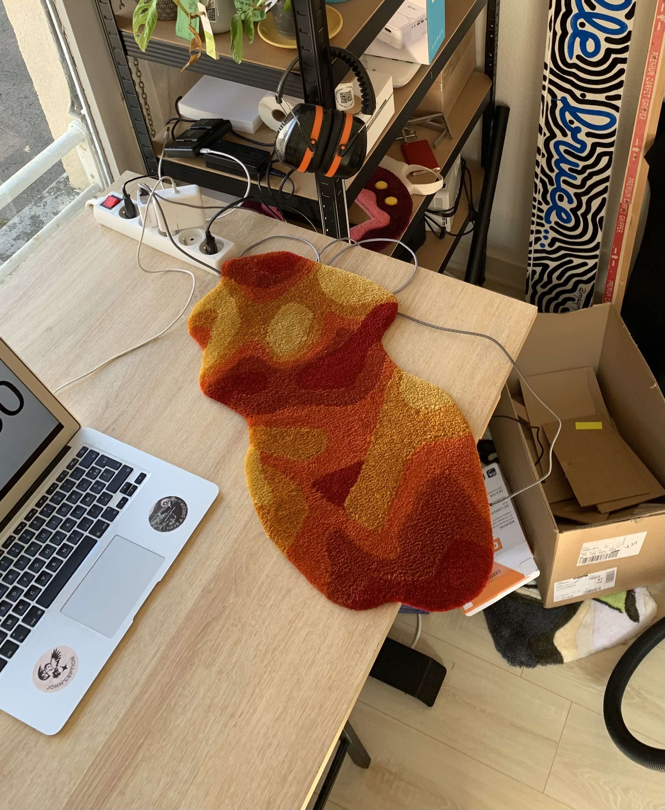 Sur cette page, vous découvrirez l'ensemble de mes créations disponibles à la vente. Tous ces tapis sont uniques, fabriqués artisanalement dans mon atelier à Strasbourg. Ils sont confectionnés à partir de laine acrylique et sont de nature décorative, destinés à être accrochés au mur ou posés à terre dans des zones à faible passage.