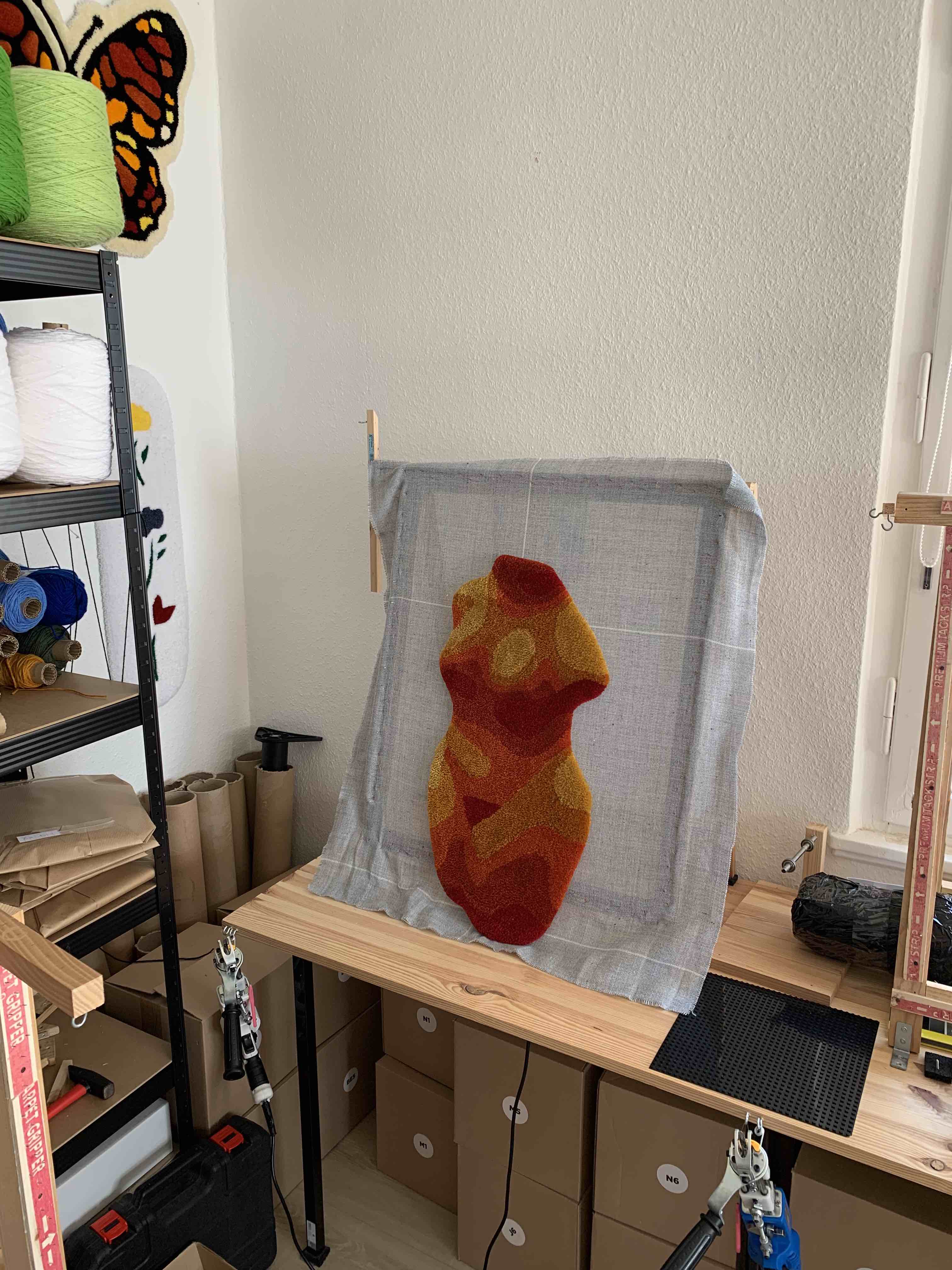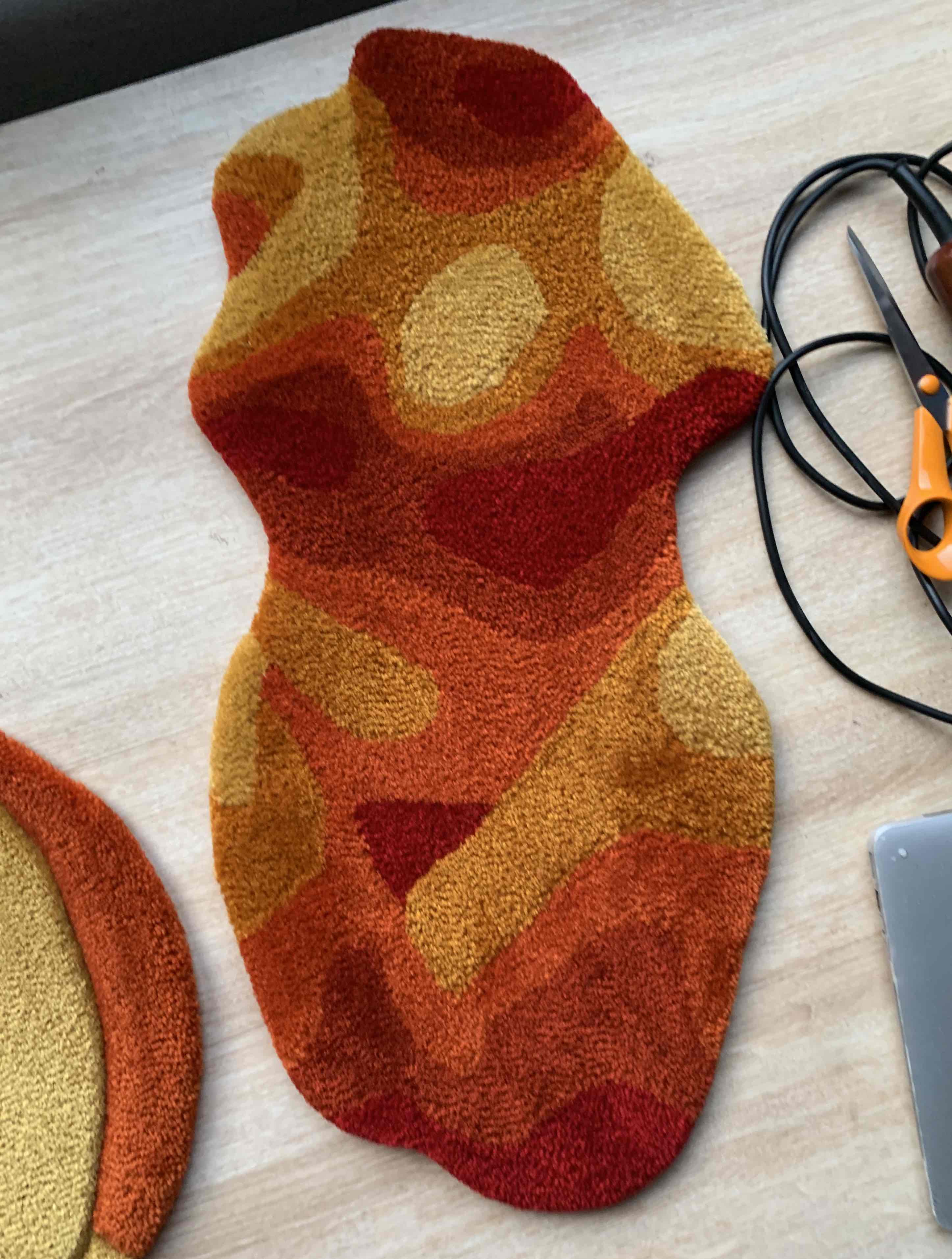 PRÉCOMMANDE - Expédition à partir du 15 octobre 2025. Tapis artisanal, designé et fabriqué à la main en Alsace. Dimensions : 62x30cm (+ ou - 2cm). Une attache murale est fournie. Laine acrylique. Ce tapis n'est pas destiné à être placé dans un endroit de passage très fréquent (entrée de logement, etc.) ni en extérieur.